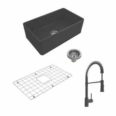 BOCCHI Classico Biscuit 30 Single Bowl Fireclay Farmhouse Sink With Free Grid
