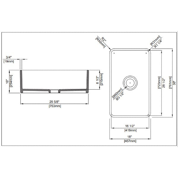 Due to the fireclay process, dimensions may vary. Please use the actual sink that you will be installing in order to determine the cutout dimensions for your countertop.