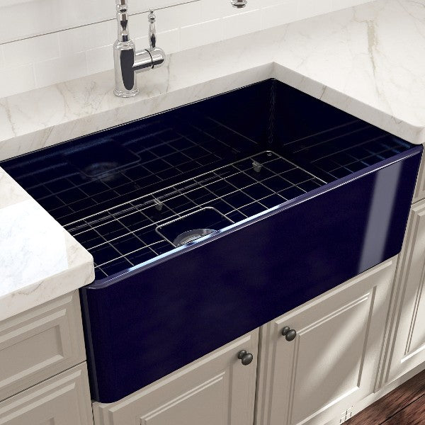 Classico 30 Sapphire Blue Single Bowl Fireclay Farmhouse Sink With Free Grid & Strainer by BOCCHI