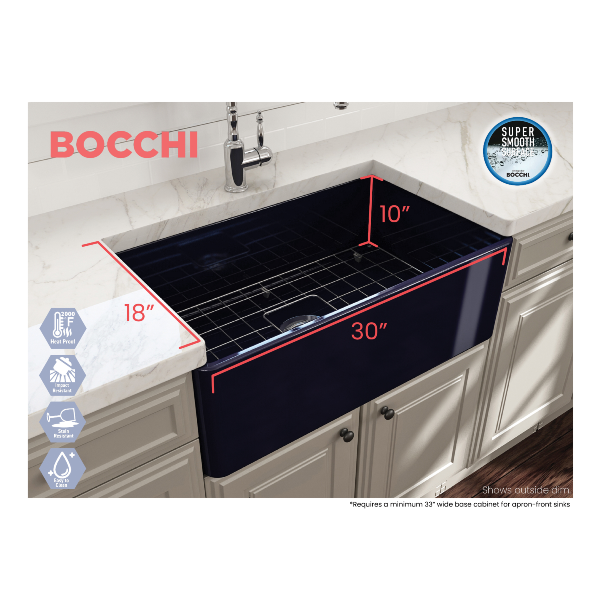 Bocchi Fireclay Farmhouse Sink 30" Classico Single Bowl W/ Grid Technical Sheet Click Here