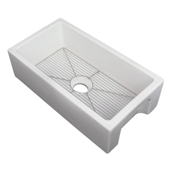 Venice 30" White Single Bowl Reversible Fireclay Farmhouse Sink w/ Bottom Grid by ZLine
