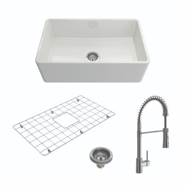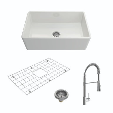 Classico 30" White Single Bowl Farmhouse Fireclay Sink w/ Grid, Strainer, and Livenza 2.0 Stainless Steel Faucet BOCCHI Farmhouse Sinks bring back ...