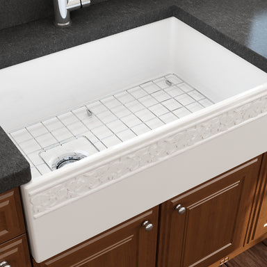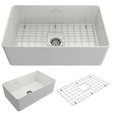BOCCHI Classico 30 White Single Bowl Fireclay Farmhouse Sink With Free Grid