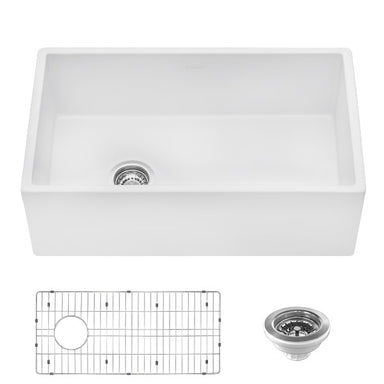 Aderci 30" Matte White Single Bowl Ultra-Slim Fireclay Farmhouse Sink with Protective Bottom Grid and Strainer by BOCCHI BOCCHI’s Aderci gives a ti...