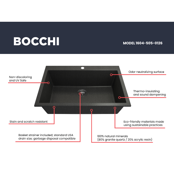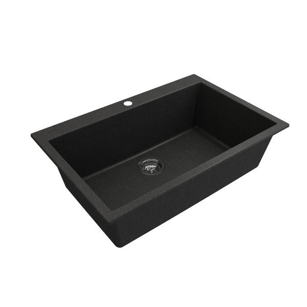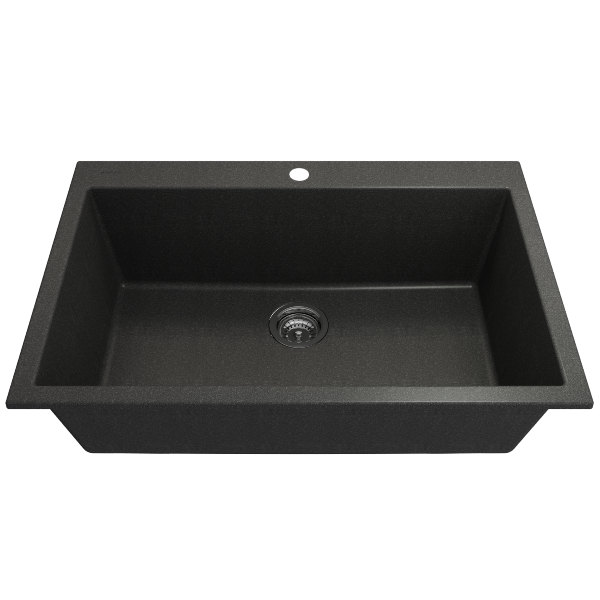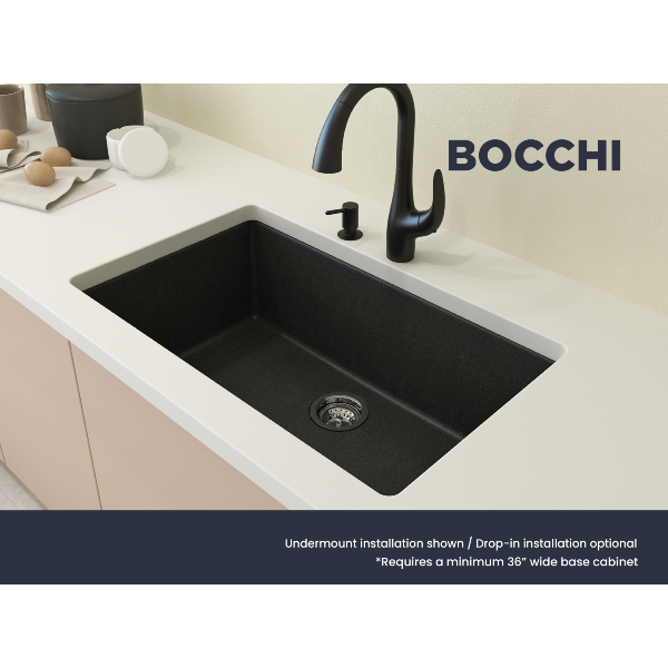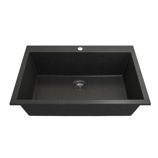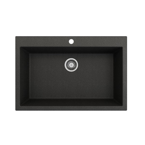 Campino Uno 33" Metallic Black Single Bowl Granite Undermount Sink with Strainer by BOCCHI