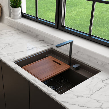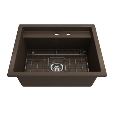 BOCCHI Baveno Uno 27" Brown Single Bowl Fireclay Dual-Mount Integrated Workstation 2-hole Sink