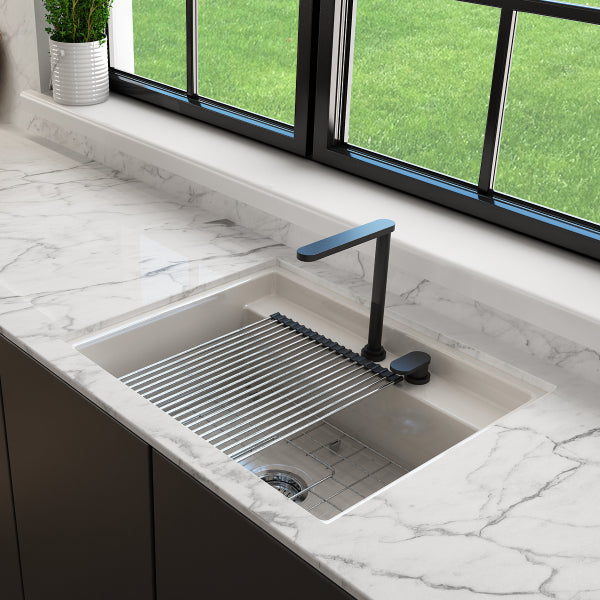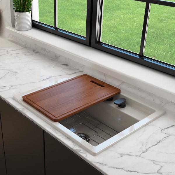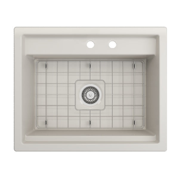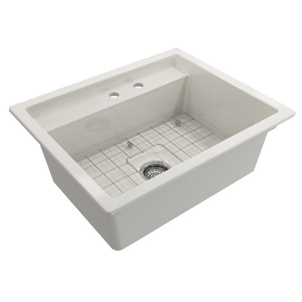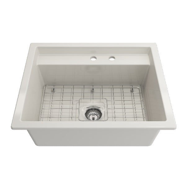 Baveno Uno 27" Biscuit Single Bowl Fireclay Dual-Mount Integrated Workstation 2-hole Sink by BOCCHI