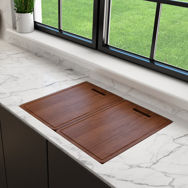 - Includes: Inner Ledge accessories= cutting board, colander, roller mat / Outer Ledge accessories= cutting board covers (2), roller mat/chrome strainer and removable, stainless steel bottom grid specially designed to protect both your sink and allow enough flex to cushion dishes when accidentally dropped into the sink