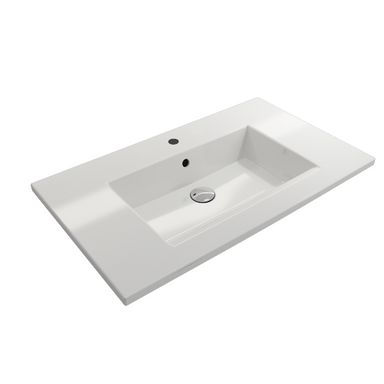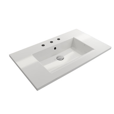 BOCCHI Milano 39" White 1-Hole Fireclay Wall-Mounted Bathroom Sink with Overflow