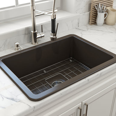 Sotto 27 Matte Brown Fireclay Single Undermount Kitchen Sink with FREE Bottom Grid and Strainer by BOCCHI BOCCHI sinks bring back the ultimate mat...