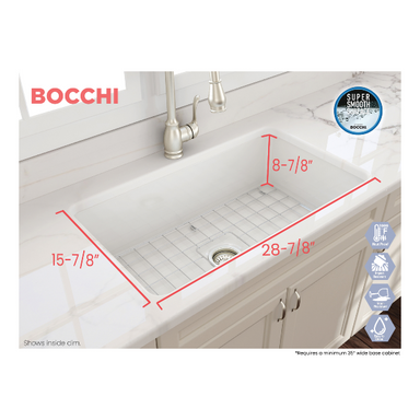Classico 30 White Single Bowl Fireclay Farmhouse Sink With Free Grid & Strainer by BOCCHI BOCCHI sinks bring back the ultimate material to you...