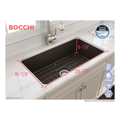 Sotto 27 Matte Black Fireclay Single Undermount Kitchen Sink with FREE Bottom Grid and Strainer by BOCCHI BOCCHI sinks bring back the ultimate mat...