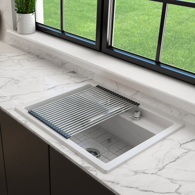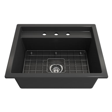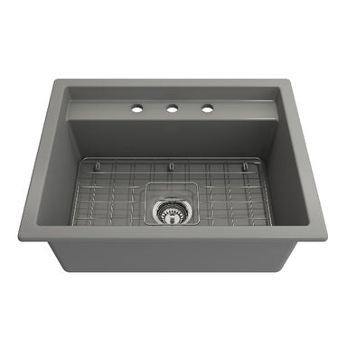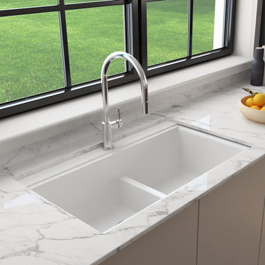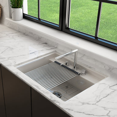 Baveno Lux 34" Milk White Single Bowl Dual Mount Granite Sink w/ Integrated Workstation by BOCCHI Safe, durable and high-quality Italian-made Gran...
