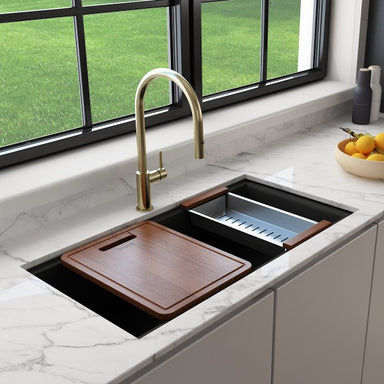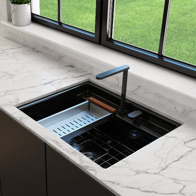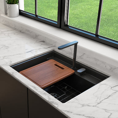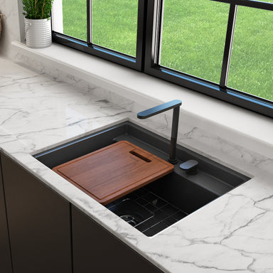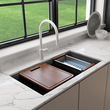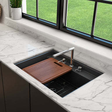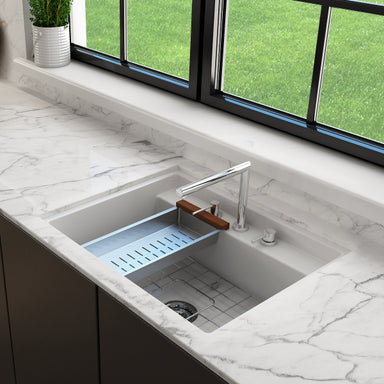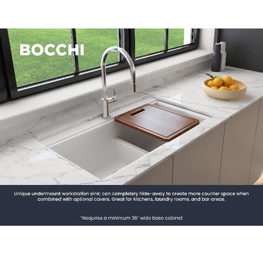 BOCCHI Baveno Lux 34" Milk White Single Bowl Granite Sink w/ Integrated Workstation
