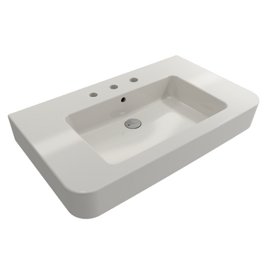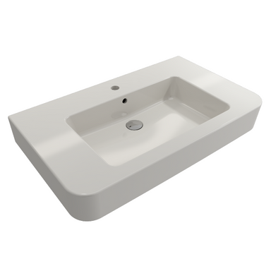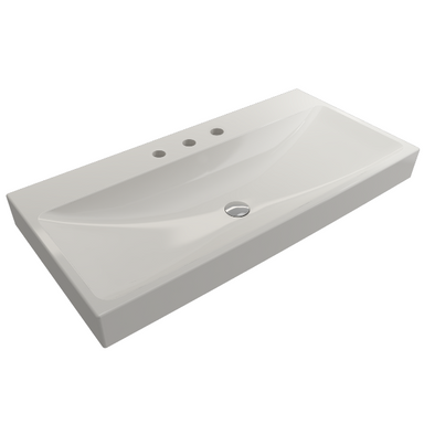 BOCCHI Milano 47" Biscuit 1-Hole Wall-Mounted Bathroom Sink Fireclay with Overflow