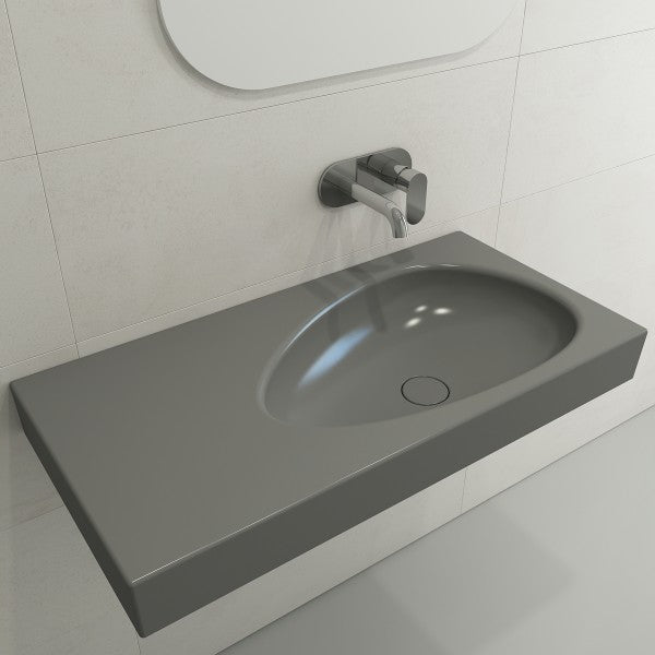 BOCCHI Etna 35" Matte Gray Fireclay Wall-Mounted Bathroom Sink w/ Matching Drain Cover