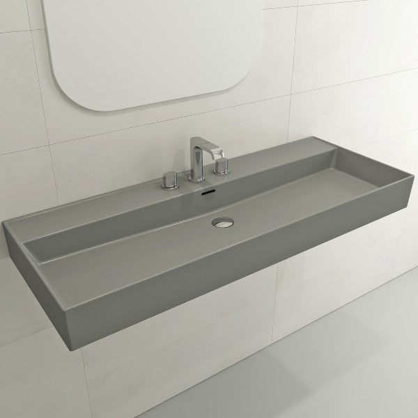 BOCCHI Milano 47" Matte Gray 3-Hole Wall-Mounted Bathroom Sink Fireclay with Overflow