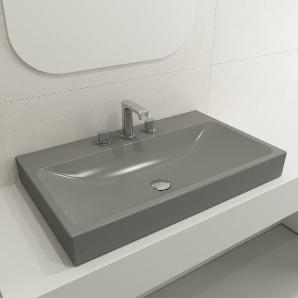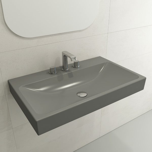 BOCCHI Scala Arch 32" Matte Gray 3 Hole Wall-Mounted Fireclay Bathroom Sink