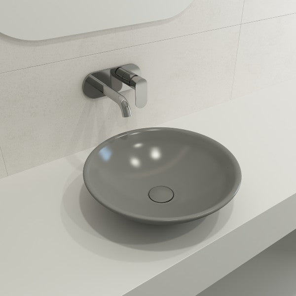 Venezia 15" Matte Gray Fireclay Vessel Bathroom Sink with Matching Drain Cover by BOCCHI
