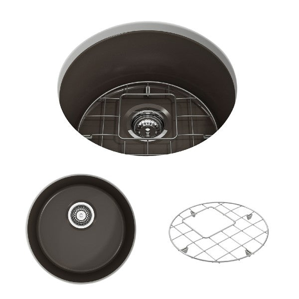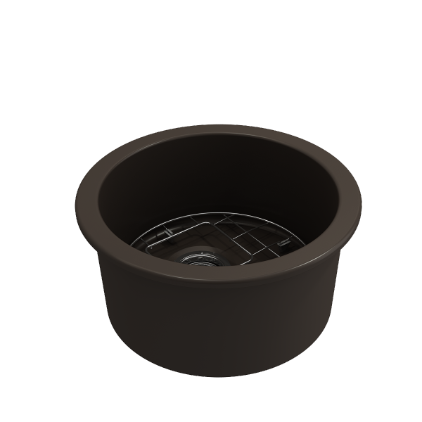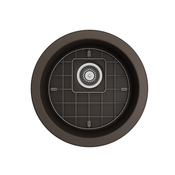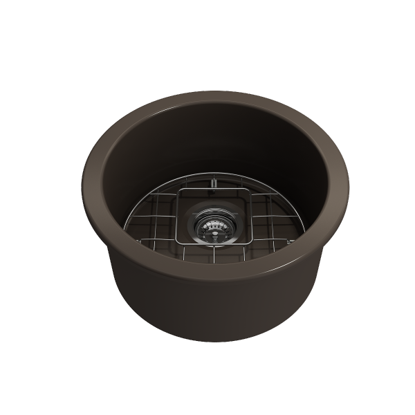 Sotto 18" Matte Brown Round Single Bowl Fireclay Undermount Prep Sink By BOCCHI
