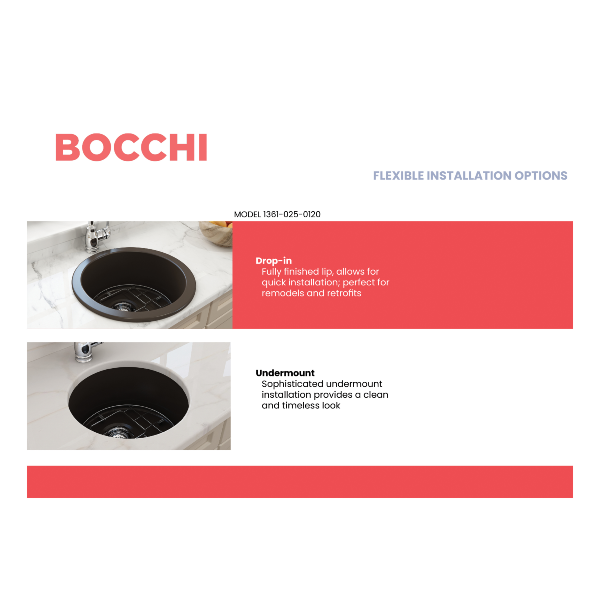 Bocchi Fireclay Undermount 18" Round Single Bowl Prep Sink Sotto Installation Guide Click Here