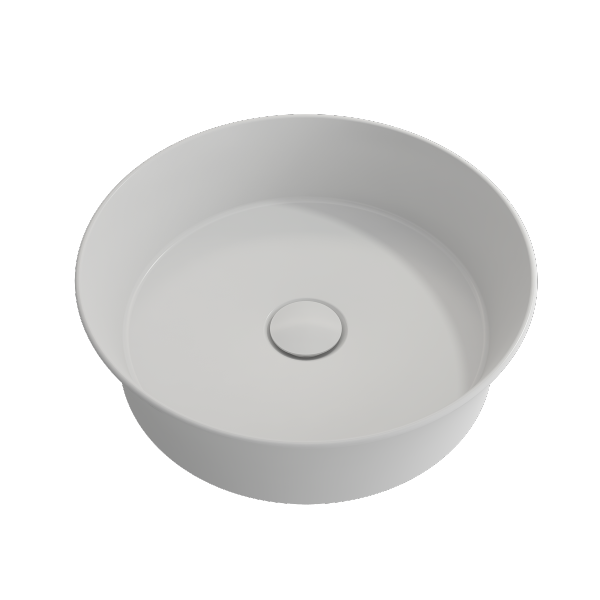 BOCCHI Sottile 15" Matte White Round Vessel Fireclay Bathroom Sink with Drain Cover
