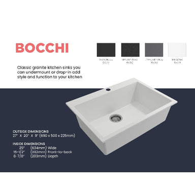 Campino Uno 27" Milk White Single Bowl Dual-Mount Granite Composite Sink by BOCCHI Safe, durable and high-quality Italian-made Granite Kitchen Sin...