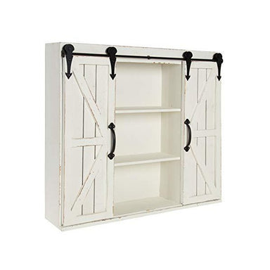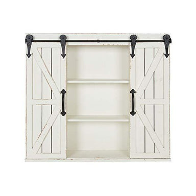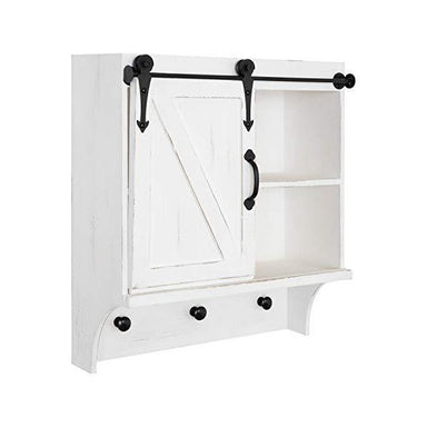 Kate and Laurel Cates 14" White Wooden Freestanding Storage Cabinet w/ Sliding Barn Door