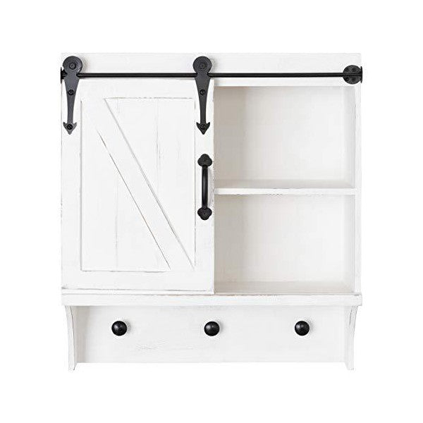 Cates 18" White Decorative Farmhouse Cabinet Wall Organizer with Sliding Barn Door and 3 Knobs by Kate and Laurel