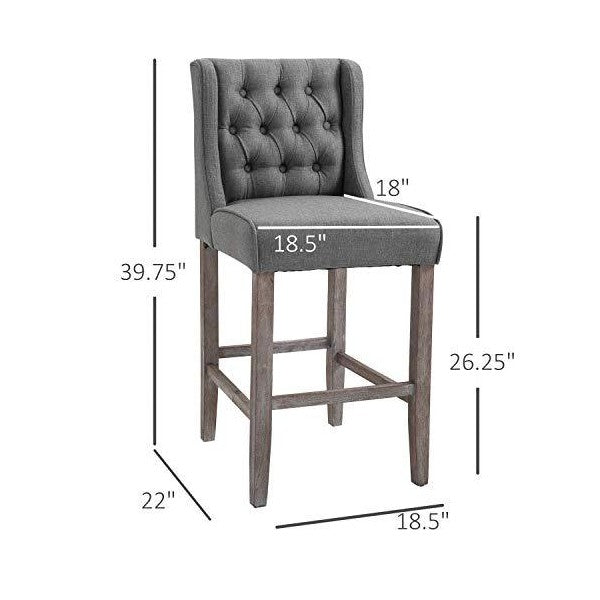 HOMCOM 40" Gray Tufted Wingback Armless Counter Height Barstools - Set of 2
