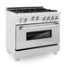 36" Stainless Steel DuraSnow Professional 4.6 cu. ft. 4 Gas on Gas Range by ZLine