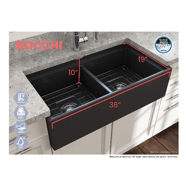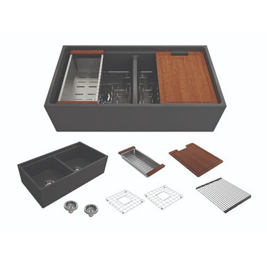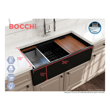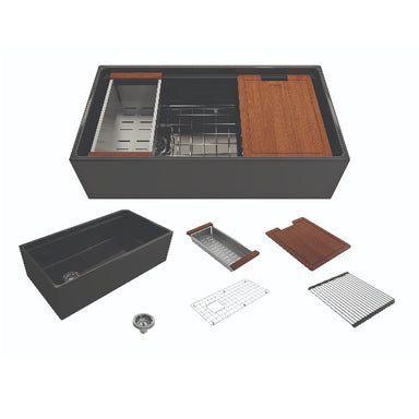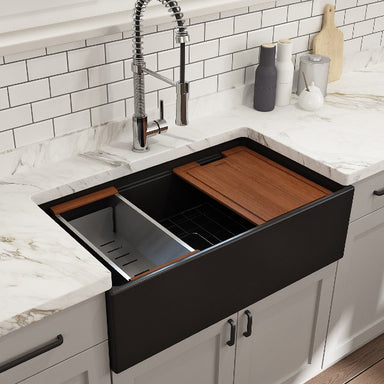 BOCCHI Contempo 30 White Fireclay Farmhouse Sink Single Bowl w/ Integrated Work Station