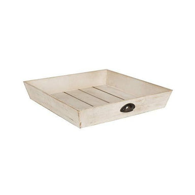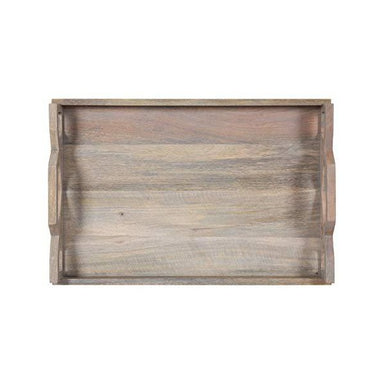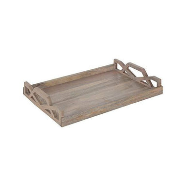 MyGift 16" White Decorative Natural Wood Breakfast Serving Tray with Cutout Handles