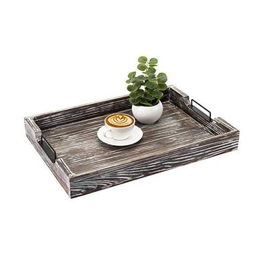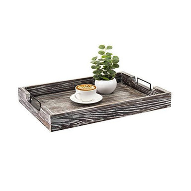 16" White Decorative Natural Wood Breakfast Serving Tray with Cutout Handles by MyGift Display, serve, and wow your family and friends with this mo...