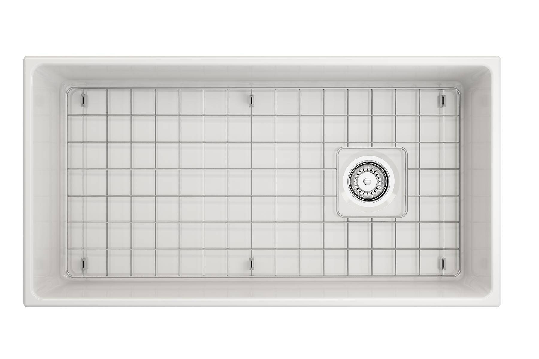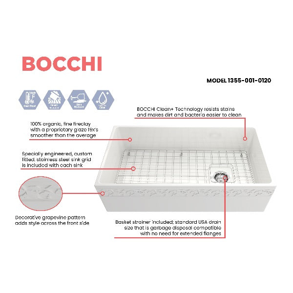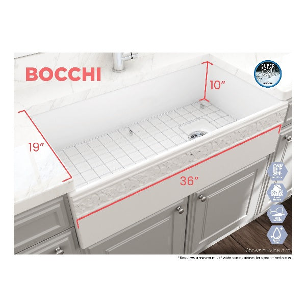 Bocchi 36" Fireclay Farmhouse Sink Single Bowl Vigneto w/ Grid Technical Sheet Click Here