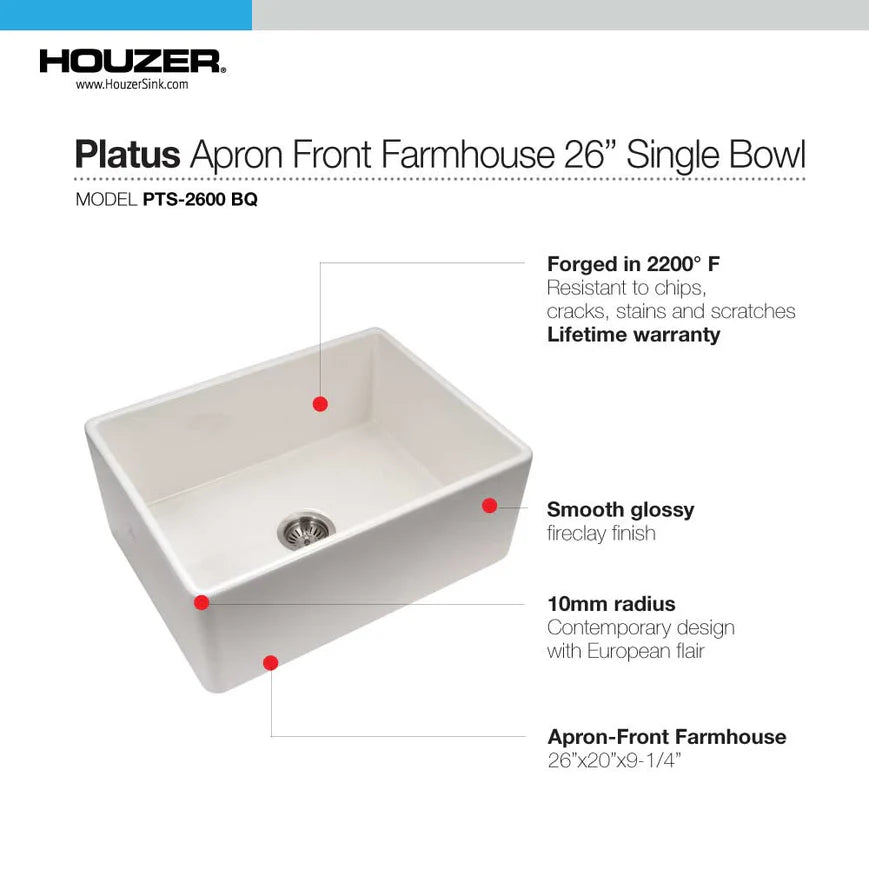 Platus PTS-2600-BQ 26" Biscuit Single Bowl Fireclay Farmhouse Sink by Houzer