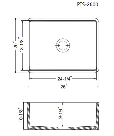 Platus PTS-2600-BQ 26" Biscuit Single Bowl Fireclay Farmhouse Sink Specifications