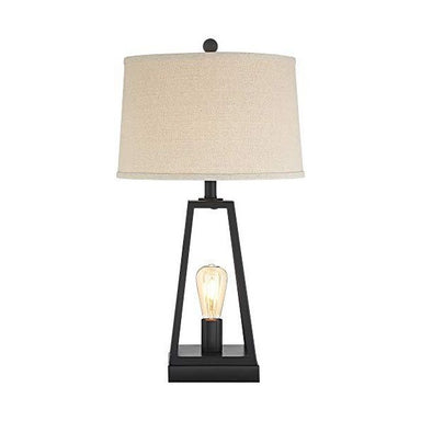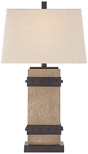 Parker Rustic Farmhouse Table Lamps Set of 2 with USB Port Hammered Oil Rubbed Bronze Wood Accents Oatmeal Tapered Drum Shade for Living Room Bedroom Bedside Nightstand Office Family - John Timberland