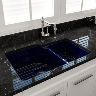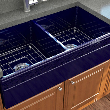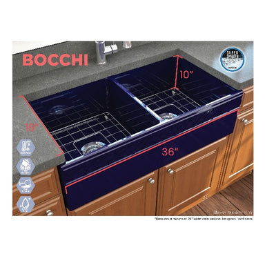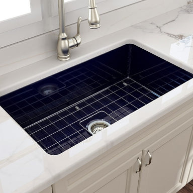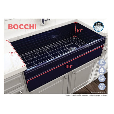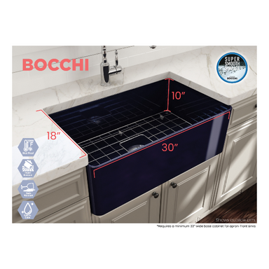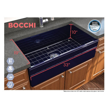Contempo 33 Sapphire Blue Fireclay Single Bowl Farmhouse Sink w/ Grid by BOCCHI BOCCHI sinks bring back the ultimate material to your kitchen. Fir...