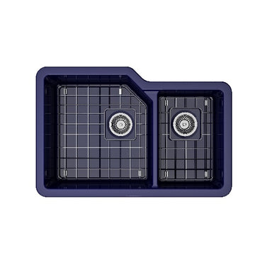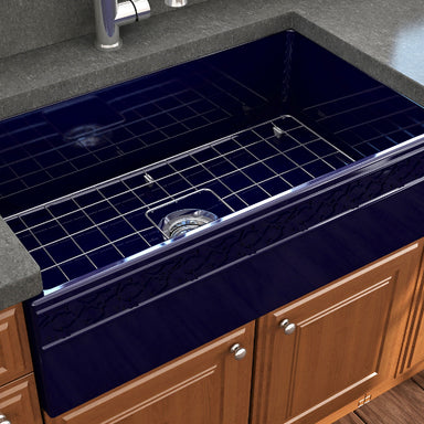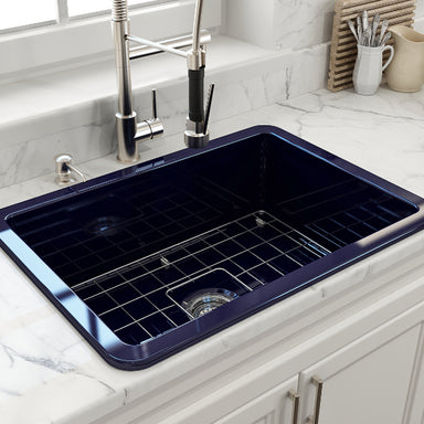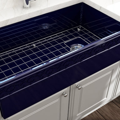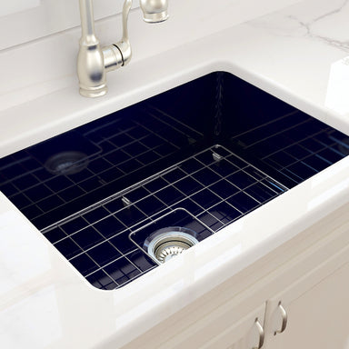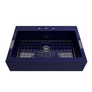 BOCCHI Contempo 33 Blue Fireclay Single Bowl Farmhouse Sink w/ Grid