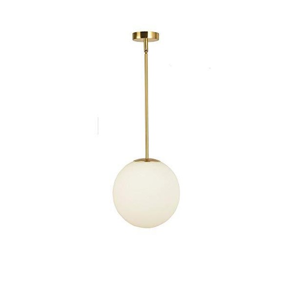 8" Matte White Glass with Brass Finish Globe Pendant Light by EFINEHOME