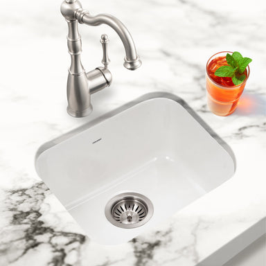Platus PTB-1318-WH 13" White Single Undermount Fire Clay Sink by Houzer Elevate your kitchen with the timeless elegance of the Houzer PTB-1318 fire...