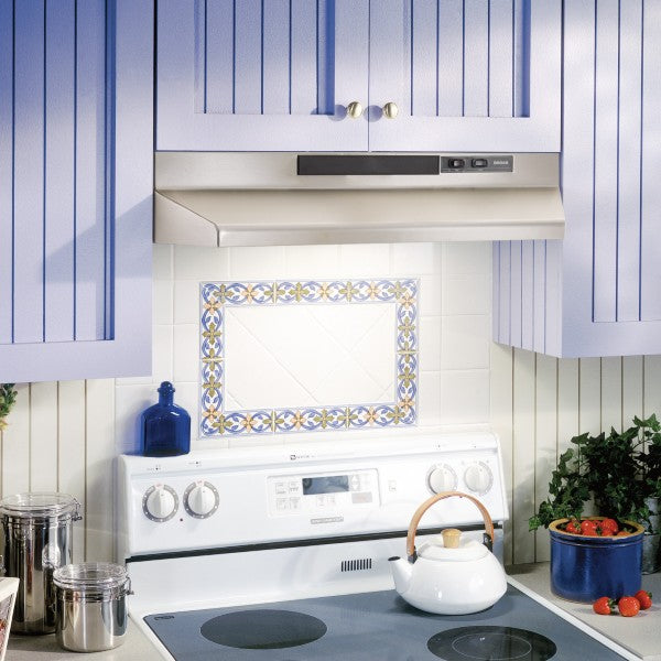 The Broan® Under Cabinet Range Hood with Light and Easy Install System is made for a wide range of installations and comes in a variety of appliance-matching colors. This powerful 4-way convertible range hood will fit into almost all applications. The hood features the EZ1 one-person installation system, equipped with a 260 MAX Blower CFM designed for years of trouble-free service, an easy-to-clean grease filter, and a protective lamp lens that distributes light evenly over the cook-top, and control switches for fan speed and light activation.