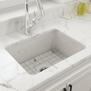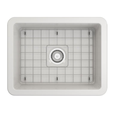BOCCHI Sotto 24" White Single Bowl Fireclay Dual-Mount Kitchen Sink w/ Grid