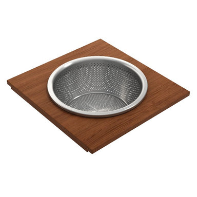 2320 0014 Wood Board with Large Round Stainless Steel Mixing Bowl and Colander for 1616, 1618, and 1633 (inner ledge) by BOCCHI Sapele Wood Board w...