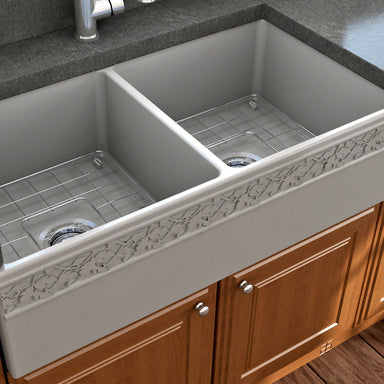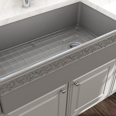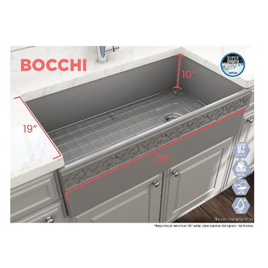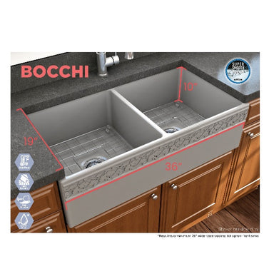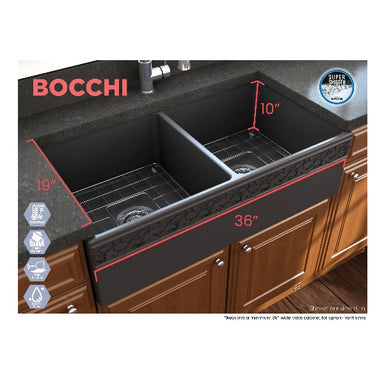 Bocchi Vigneto 36" Dark Gray Fireclay Double Bowl Farmhouse Sink w/ Grid