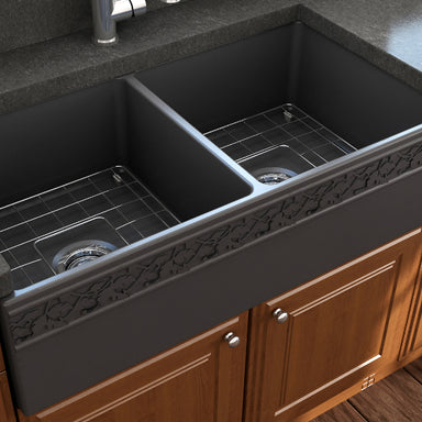 Vigneto 36" Matte Dark Gray Fireclay Double Bowl Farmhouse Sink With Free Grid and Strainer by Bocchi BOCCHI sinks bring back the ultimate material...