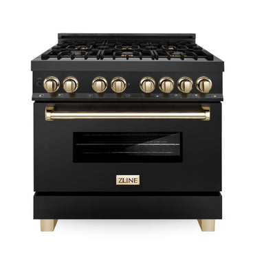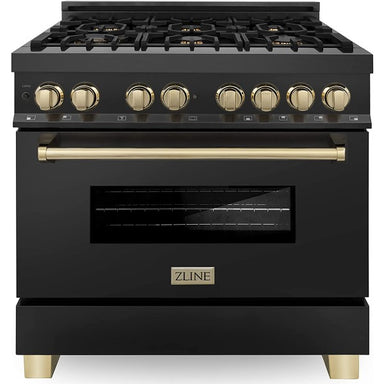 Autograph Edition 36" Black Stainless Steel 4.6 cu. ft. Dual Fuel Freestanding Gas Range with Gas Stove, Electric Oven, and Gold Accents by ZLINE E...