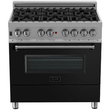 36" Matte Black Professional DuraSnow® Dual Fuel Freestanding Range by ZLine Experience Attainable Luxury® with the ZLINE DuraSnow® Dual Fuel Profe...