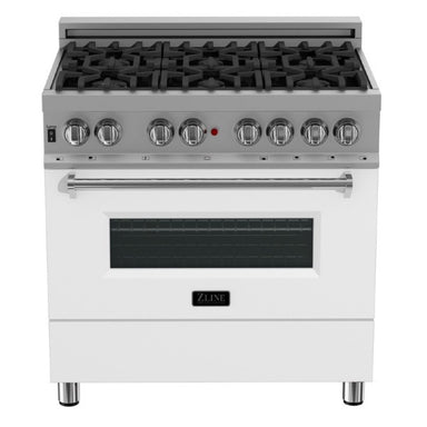 36" Matte White Professional DuraSnow® Dual Fuel Freestanding Range by ZLine Experience Attainable Luxury® with the ZLINE DuraSnow® Dual Fuel Profe...